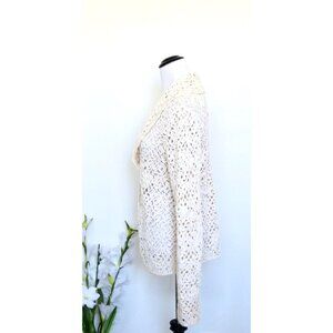 NEW! Talbots Alpaca Wool Blend Crochet Knit Cardigan Button Front Ivory SZ M