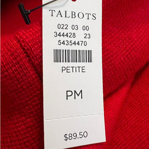 New Talbots boatneck sweater with rolled neckline, red pure merino wool, size MP