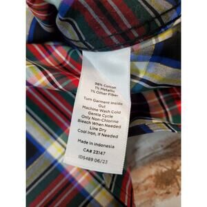 NEW Talbots Button Down Top Womens 4 Plaid Long Sleeve Holiday Gold Metallic