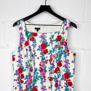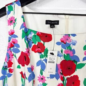 NEW Talbots Dress Size 12 White Floral Sleeveless Pink Green Blue Square Neck