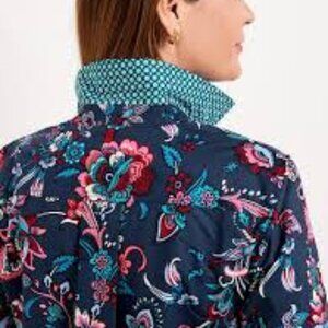 NEW Talbots Modern Classic 100% Cotton Shirt Navy Floral Paisley PETITE