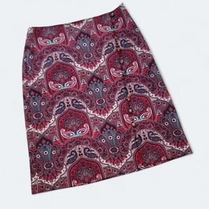 NEW Talbots Paisley Patterned Red Skirt With Front Buttons Size 4