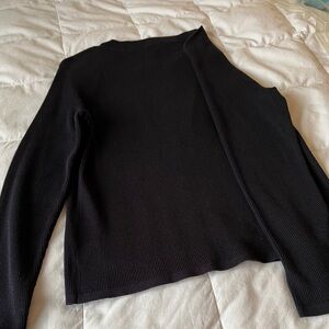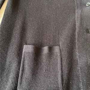 Ribbed knit cardigan Navy Blue with front buttons. Features two front pockets. Lightweight layering piece. Timeless wardrobe staple.