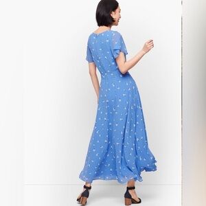NEW! Talbots Scattered Floral Tie Front Midi Dress 6 Petite Daisy Blue Wedding