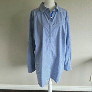 NEW Talbots Shirt Button Up Blue White Stripe Stretch Long Sleeve Plus Size 2X