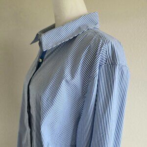 Plus size Talbots concealed button front striped shirt - long sleeves - contrast fabric strip inside collar, button facing and cuff - light stretch to fabric - curved hem