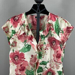 NEW Talbots Shirt Womens 6 pink green floral blouse preppy classic casual
