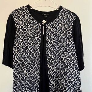 NEW Talbots Silk Navy/White Print Short Sleeve Lightweight Cardigan , Medium