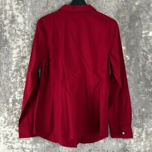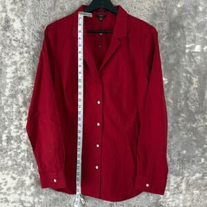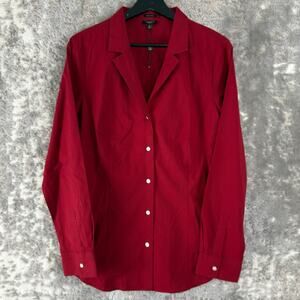 NEW Talbots Size 12 Stretch Notched Casual Button Top Red Long Sleeve V Neck