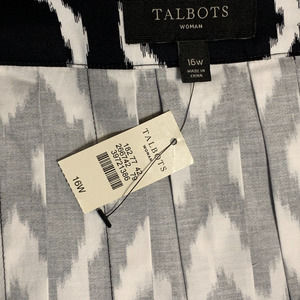 NEW Talbots Skirt Black White Pleated A Line Knee Length Elastic Waist Zip 16W