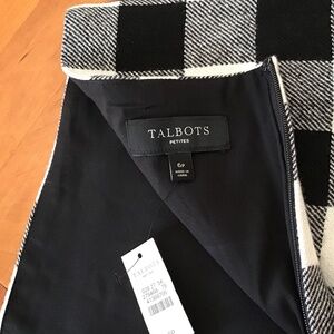 NEW Talbots Skirt Buffalo Check Wool Blend Fully Lined Size 6P Black White Plaid
