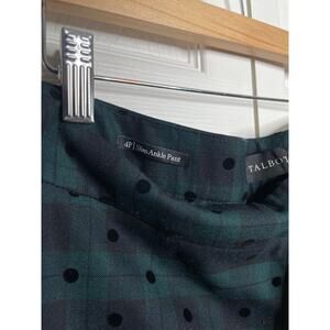 Talbots Slim Ankle Pant Green Navy Plaid Velvet Polka Dots Size 4 Petite