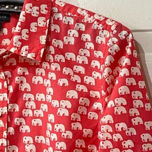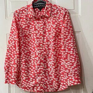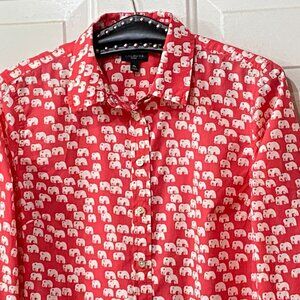 NEW Talbots Sz Mp Blouse Shirt Roll Up Long Sleeve Pink/ White Elephant Print