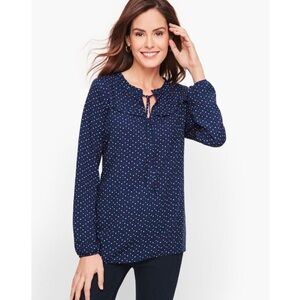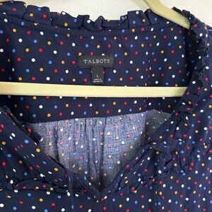 ❤️ NEW Talbots Tie Neck Polka Dot Print Top Ruffle Collar July 4th size L