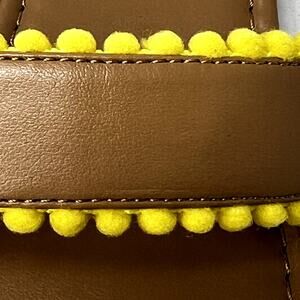 NEW Talbots Yellow Pom Pom Slide Sandals Tan Vegan Leather sz 11 M