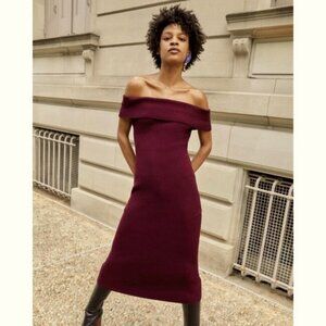 NEW Tanya Taylor Merino Wool Quincy Knit Off Shoulder Dress Mulberry Size XS NWT