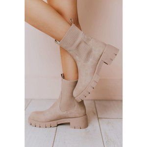 NEW Taupe Beige Chunky Lug Sole Platform Elastic Sock Ankle Chelsea Bootie Boots