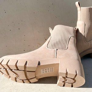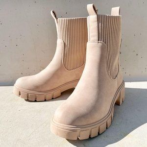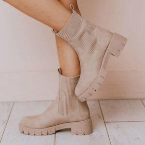 NEW Taupe Beige Chunky Lug Sole Platform Elastic Sock Ankle Chelsea Bootie Boots
