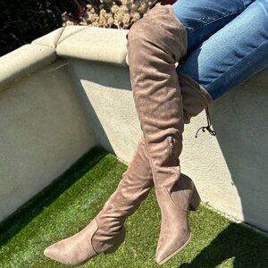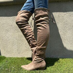 NEW🔥 Taupe Slouchy Over The Knee OTK Boot Drawstring Tie Lace Up Block Low Heel