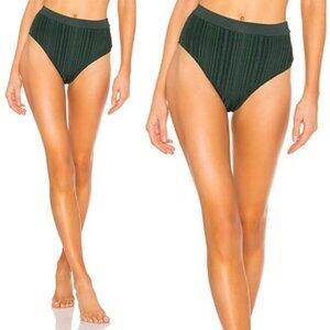 NEW Tavik Pernille High Waisted Bikini Bottom L Pine Green Metallic Stripe Swim