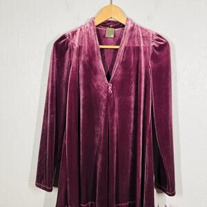 NEW! Taylor Velvet V Neck Trapeze Dress Pink Purple Long Sleeve - 6