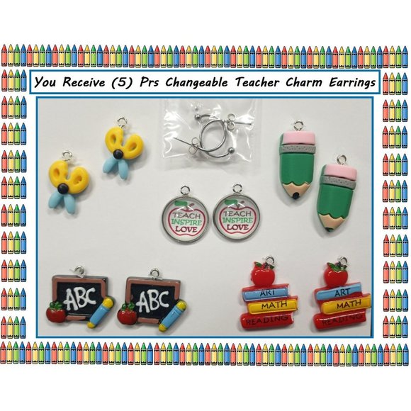 NEW Teacher Interchangeable Charm Earrings 5 Pairs/ Set School Appreciation Gift