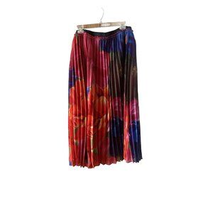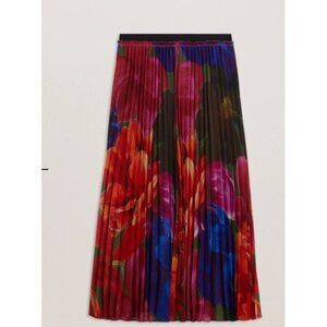 NEW Ted Baker Evola Print Pleated Midi Skirt in Black Multi Size 6/12-14