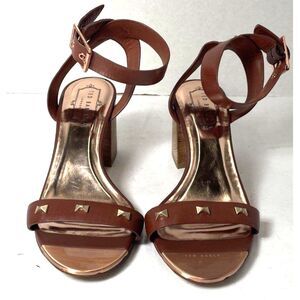 NEW Ted Baker London "BIAH" Brown 100% Leather Studded Sandal Heels Size 6.5