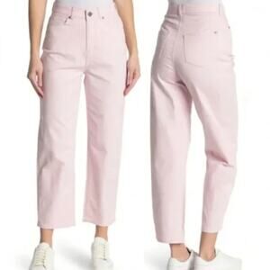 Light pink straight leg, high waisted, stretchy fit. Cropped ankle length.
