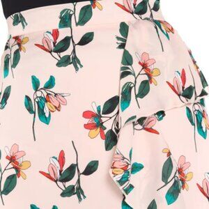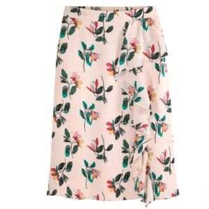 NEW Ted Baker Pull On Elastic Waist Knee Length Midi Floral Print Ruffle Skirt