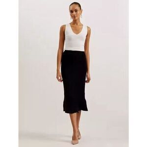 NEW Ted Baker Velenaa Curved-Hem Stretch Knit Midi Skirt - Black 5 US 12