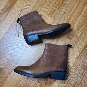NEW Ten Points Size 7 Leather Sweden Tan Heeled Chelsea Booties