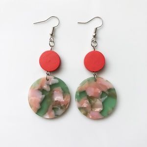 NEW "Terra" Acrylic Wooden Round Earrings (Pink)
