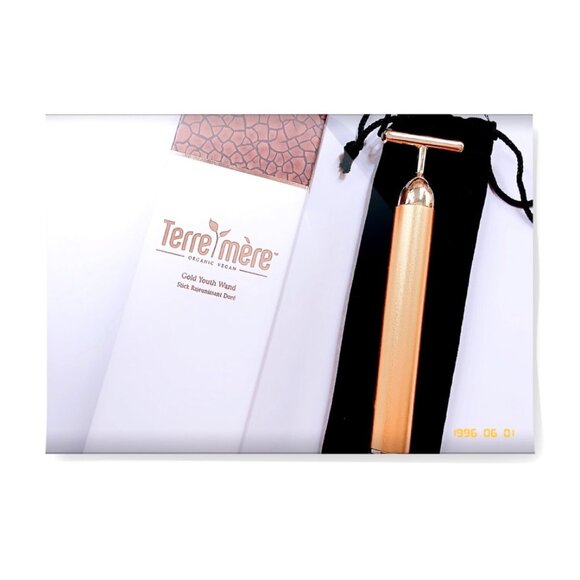 With 8,000 micro-vibrations a minute, the elegant and compact Gold Youth Wand firms and stimulates your facial muscles, improving skin tone and reducing wrinkles around your eyes, lips, forehead, and neck. The gold-plated head is T-shaped to stimulate the skin cells through massaging movements, while the wavelength of the gold ions is aligned with your body's natural current to balance your skin's natural bioelectricity therapeutically. (AA battery included).