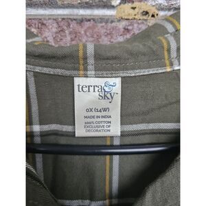 NEW Terra & Sky Olive Green Flannel Shirt Embroidery Flower Plaid Plus Sz 0x 14w