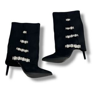 NEW Thalia Sodi Name Black Fold Over Embellished Boots SZ 10 High Stiletto Heels