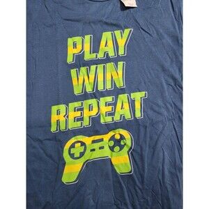 This is a graphic print short sleeve t-shirt for boys in size XXL/16-18. The t-shirt features a "Play Win Repeat" gaming theme, making it perfect for young gamers. It has a crew neck and a pullover style with a regular fit, suitable for everyday wear. The shirt is made of 100% cotton, ensuring comfort and breathability for the child. Designed by The Children's Place, this multicolor t-shirt is a fun and stylish addition to a boy's wardrobe.