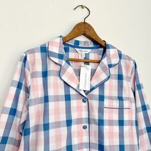 NEW The Company Store Plaid Poplin Women's Long Sleeve Button Down Pajama Top L