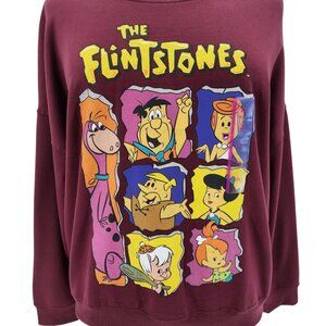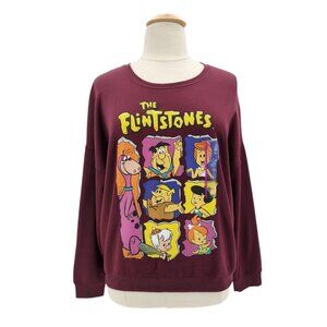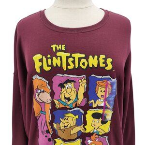 NEW The Flintstones Womens XXL Sweatshirt Graphic Characters Maroon Cartoon Retro
