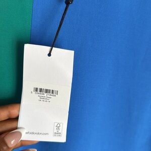 NEW The Fold London Sorrento Dress Tranquil Teal Multicolour 14