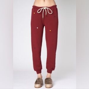 NEW The GREAT Red Cropped Sweatpant Embroidered Hearts Size 3 Large Made in US