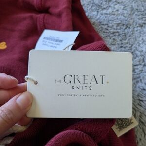 NEW The GREAT Red Cropped Sweatpant Embroidered Hearts Size 3 Large