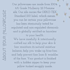 I made sure to pick a silk that is made with the OEKO-Tek standard, meaning it is not produced with harmful chemicals and has been globally certified as harmless for your health.