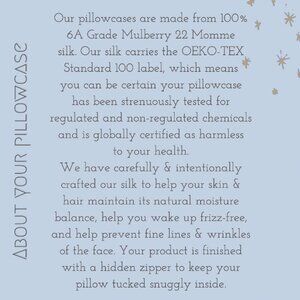 I made sure to pick a silk that is made with the OEKO-Tek standard, meaning it is not produced with harmful chemicals and has been globally certified as harmless for your health.