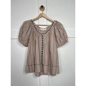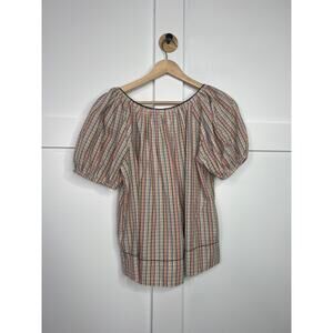The Great. Puff Sleeves Button Front The Porch Cotton Top Pastel Plaid. New without tag!