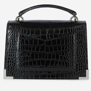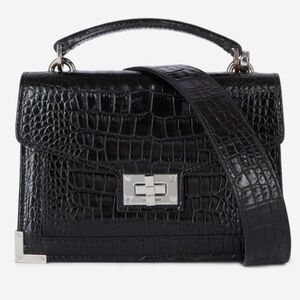 NEW The Kooples EMILY SMALL CROCODILE-EFFECT BAG BLACK LEATHER Silver