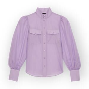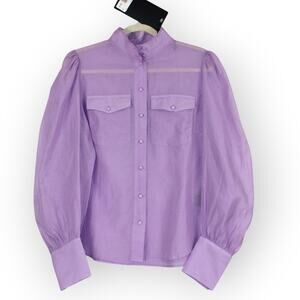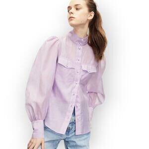 NEW The Kooples Paris Blouse FR 4 ~ US L/XL Lavender Cotton~Silk Sheer Puff