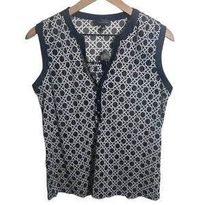 NEW The Limited Navy Blue White Sheer Printed Tank Top Size Medium