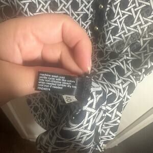 Item: Navy blue and white patterned sheer tank top from The Limited