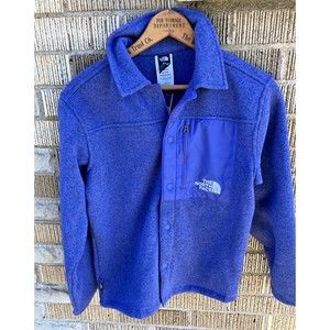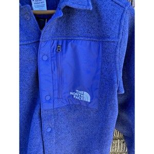Stay cozy and stylish with this NEW The North Face Boys XL Sweater Fleece Button Coat. Made of 100% Polyester, this blue heather coat features a button closure and a zipped pocket for added convenience. The fleece fabric type and polyester insulation material keep your child warm during chilly weather.